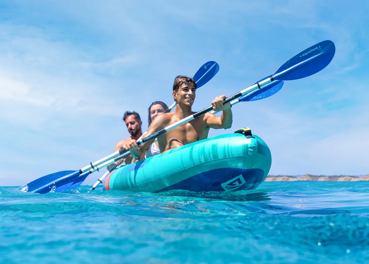 Рекреаційний каяк із високоякісними бортовими балонами з тентованої тканини для максимальної продуктивності. Конструкція з високим дном drop-stitch забезпечує комфорт і сухість під час тривалих подорожей на воді.