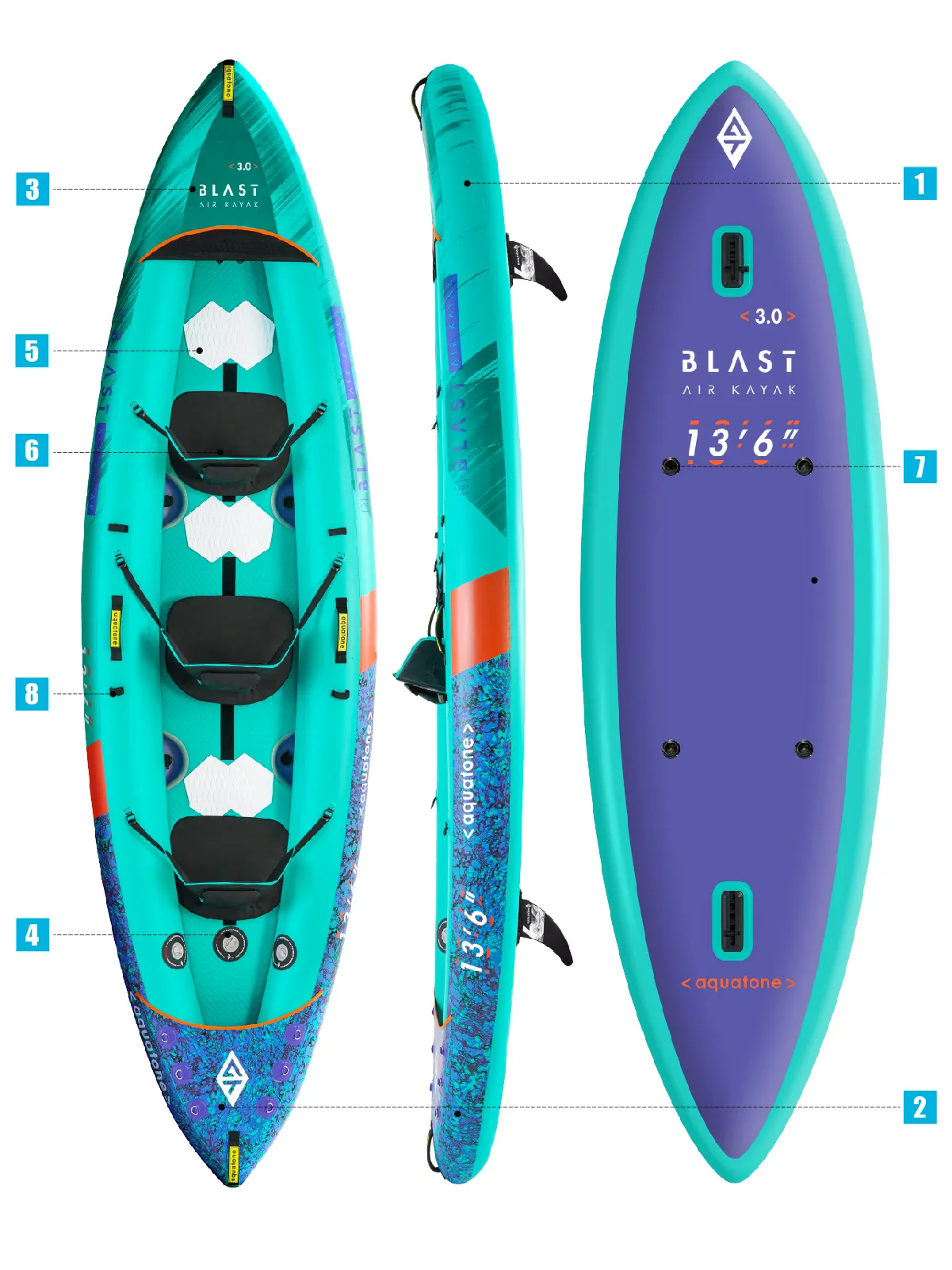 Оснащений двома самозливними клапанами, BLAST використовує силу гравітації, щоб каяк міг позбутися небажаної води, що стікає через корму.
