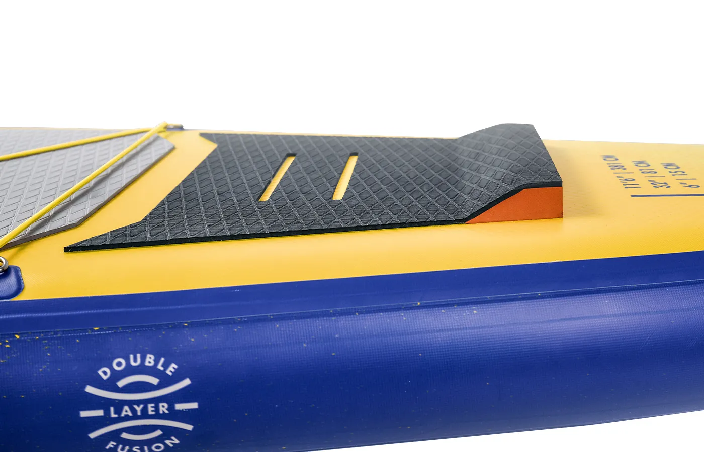 Современная конструкция с двойным ламинированным слоем PVC сверху и снизу делает доску на 20% легче и на 25–30% жёстче. Это обеспечивает более быстрое скольжение, лучшую стабильность и высокую эффективность каждого гребка.